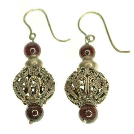 Vandut Cercei etnici indieni decorați cu granate naturale | argint filigranat