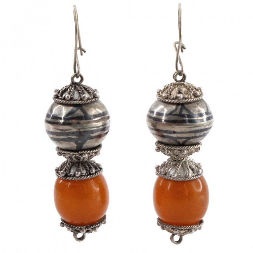 Impresionantă pereche de cercei etnici magrebieni, decoraţi cu anturaje de chihlimbar natural butterscotch.