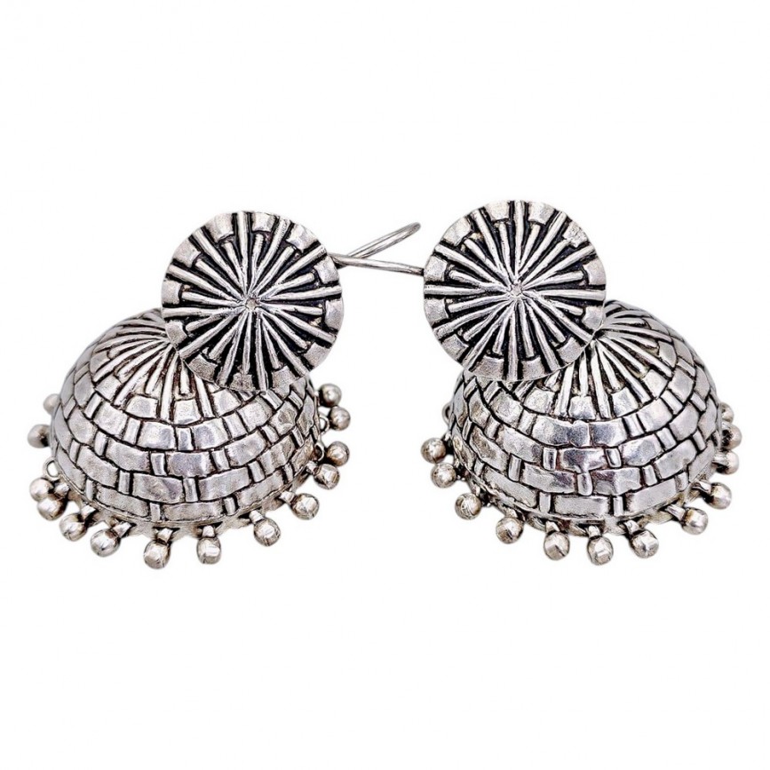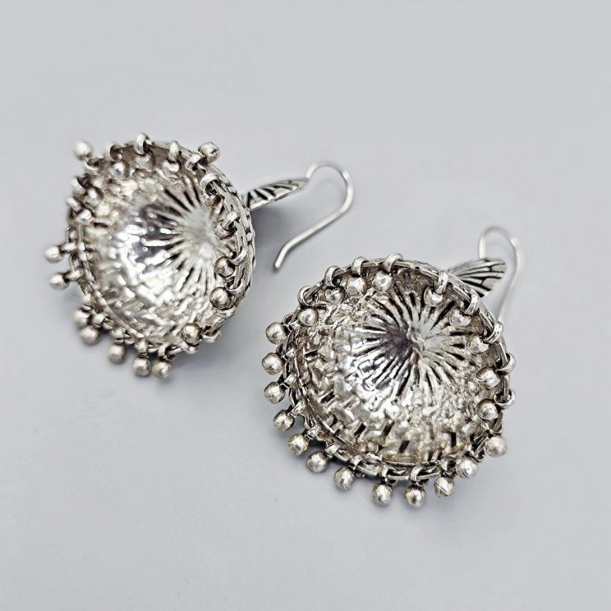 Cercei etnici indieni manufacturați în argint cu accente patinate în manieră niello.