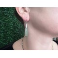 Anturaje piriforme de jad serpentin, în nuanță verde-lime, atașate prin incizare mediană.