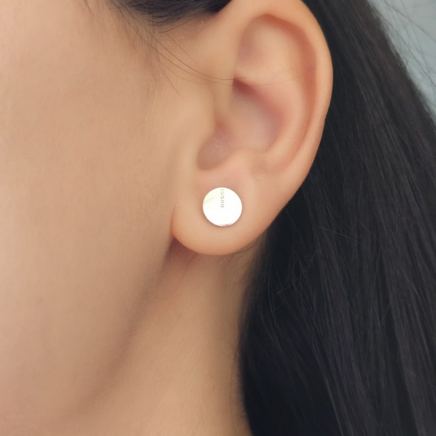 Modelul prezintă un disc rotund cu suprafață satinată, pe care este aplicat discret marcajul GUCCI, realizat prin ștanțare fină.