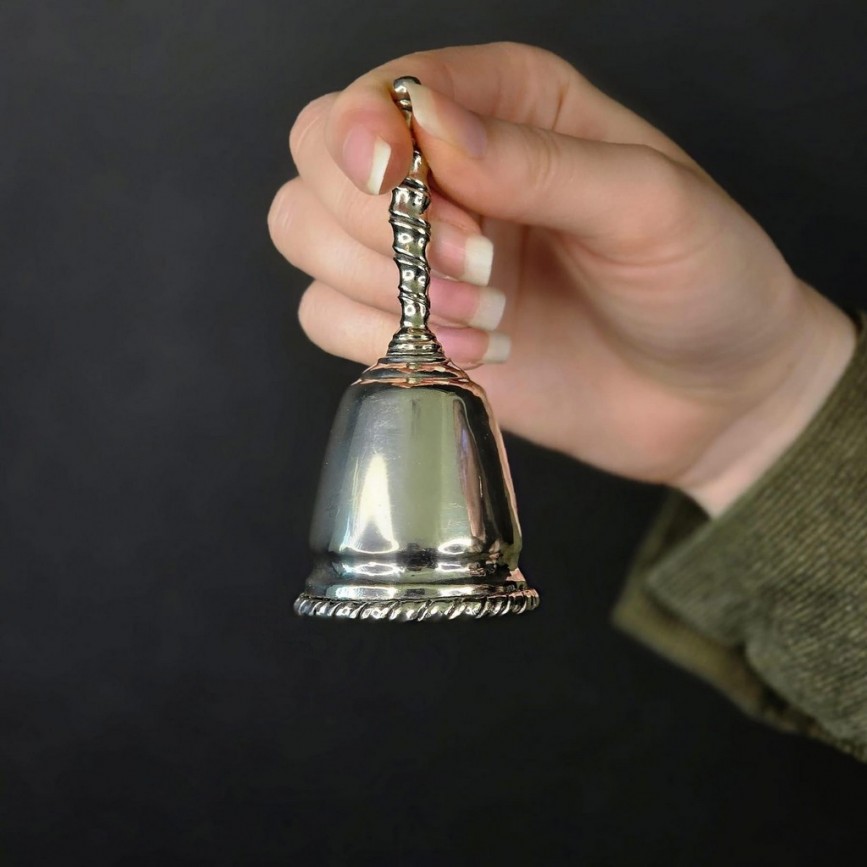 Clopoțel din argint masiv, elegant elaborat în stil neo-baroque.