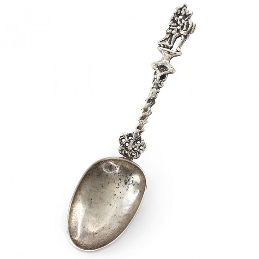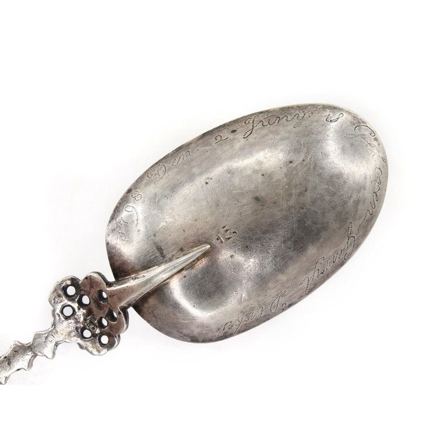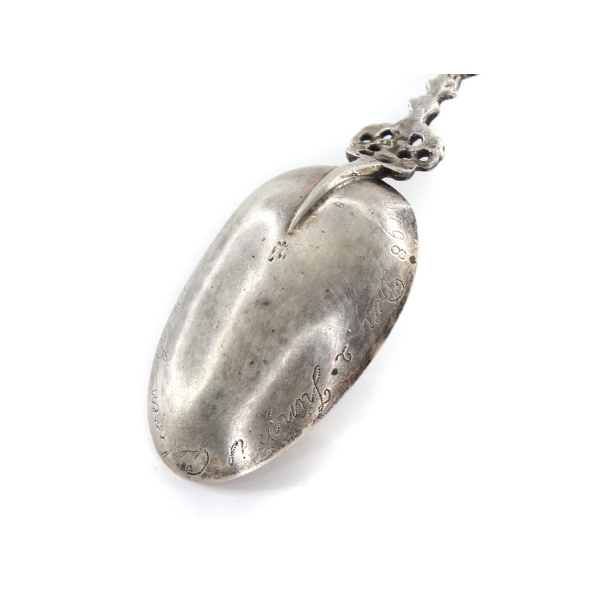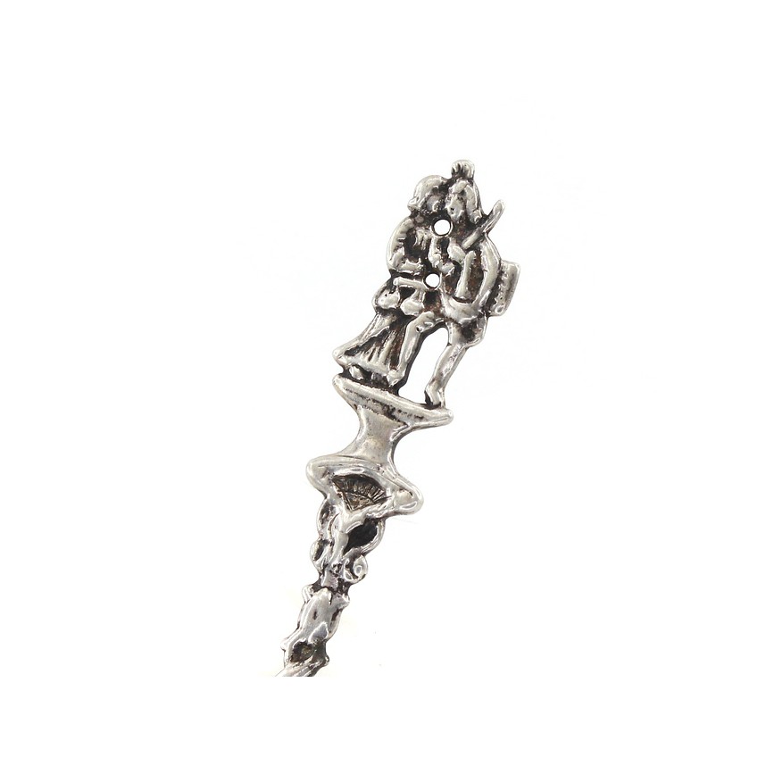 Terminația mânerului este ornamentată în manieră William & Mary, redând un cuplu în ipostastază romantică.
