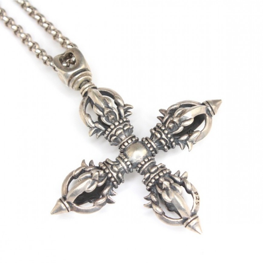 impozanta amuleta stilizata sub forma simbolului sacru budist " Visvavajra " ( Dublu Dorje )