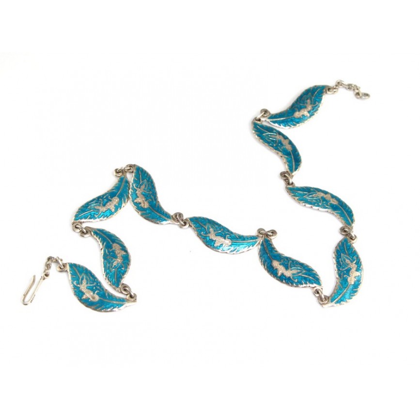 colier compus din elemente stilizate sub forma unor frunze lanceolate, minutios gravate cu reprezentari ale unor dansatori khon