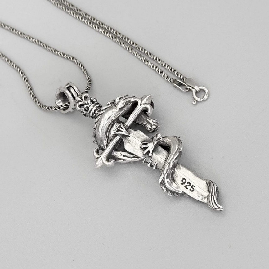 Pandant elaborat sub forma unui dragon stilizat, încolăcit în jurul unei săbii medievale.