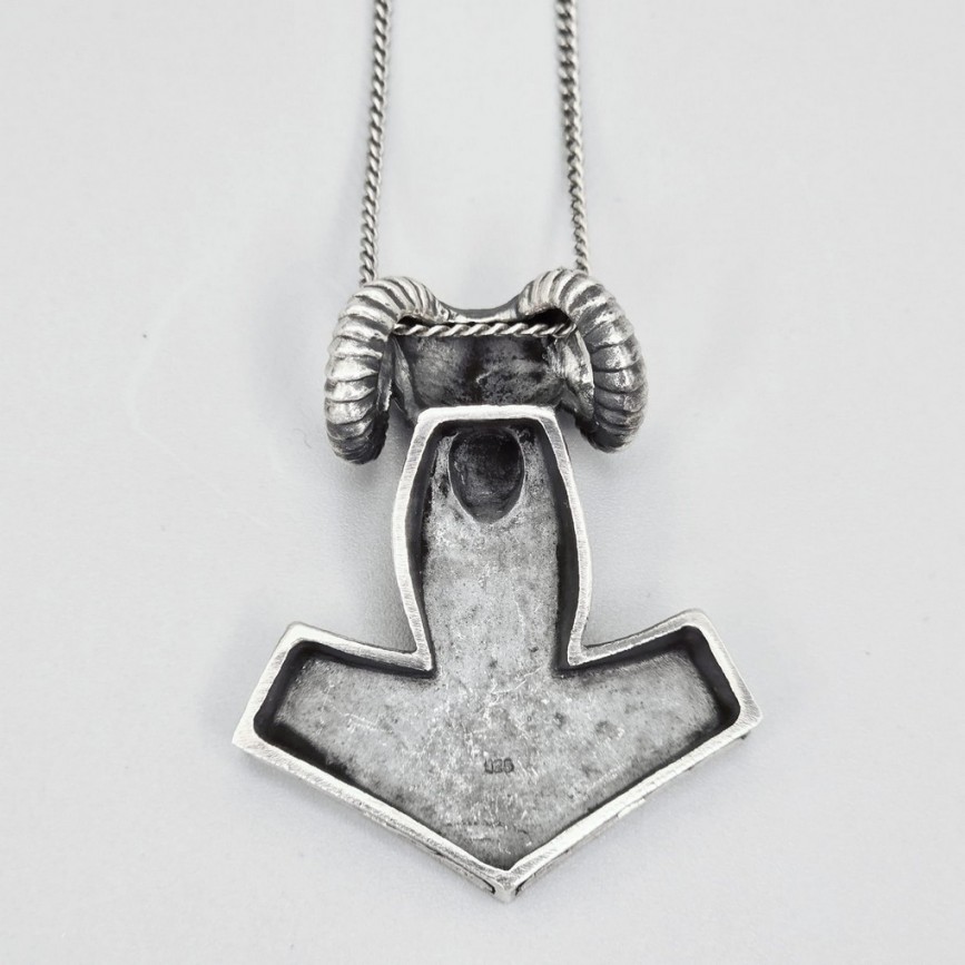 Colier unisex din argint cu pandant statement reinterpretând miticul Mjölnir ( Ciocanul lui Thor ),