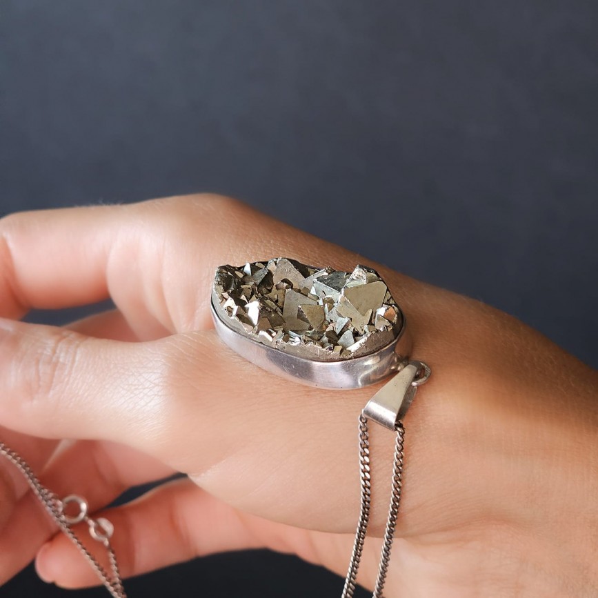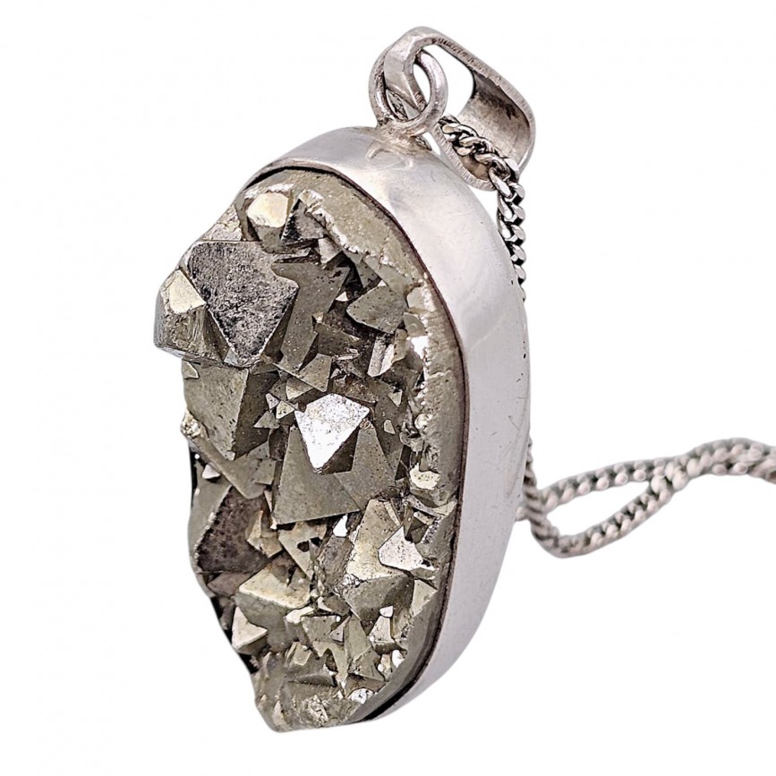 Colier din argint accesorizat cu pandant statement decorat cu un spectaculos anturaj de pirită naturală | Polonia cca. 1970