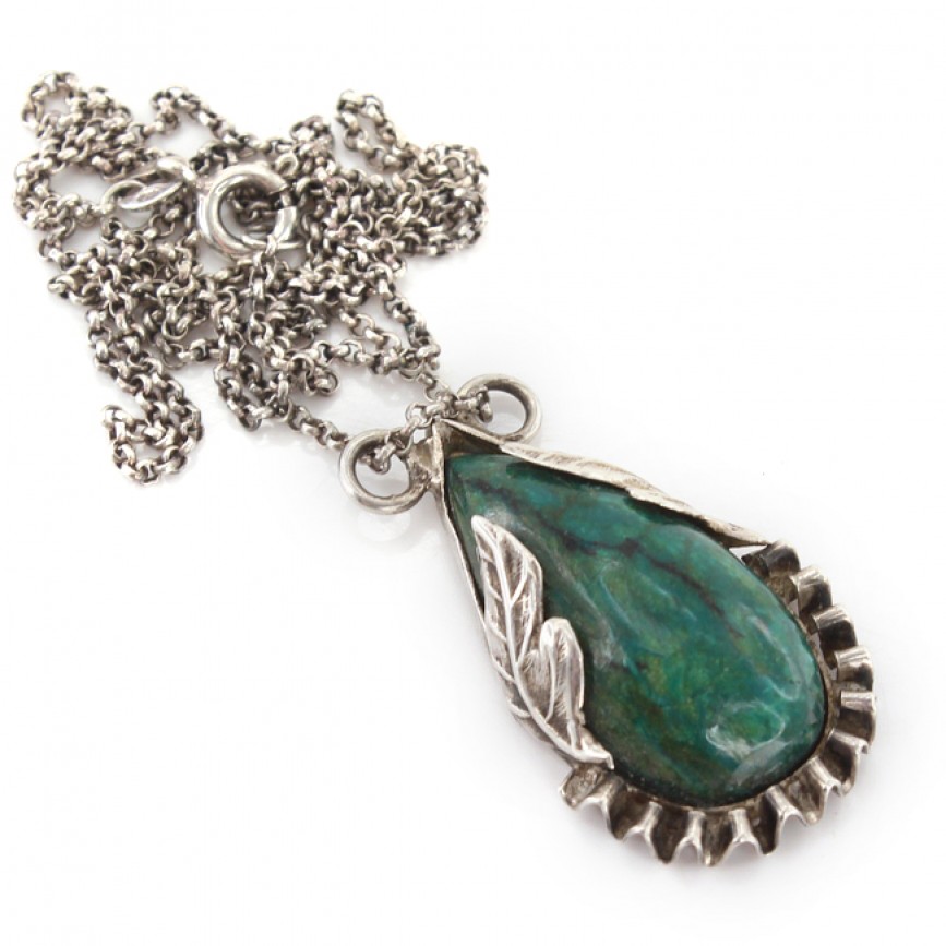 Colier accesorizat cu pandant Art Deco decorat cu anturaj de crisocola