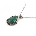 Specimen de crisocola, cu tăietură pirifomă și șlefuire en-cabochon, etalând o frumoasă saturație de culoare verde.