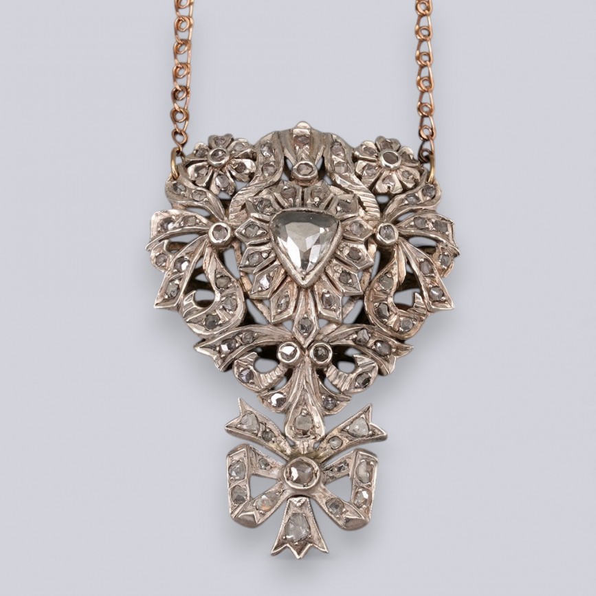 NOU Colier de epocă georgiană din aur roșu 14k și  argint cu diamante naturale 1.26 CT | cca. 1780 Marea Britanie