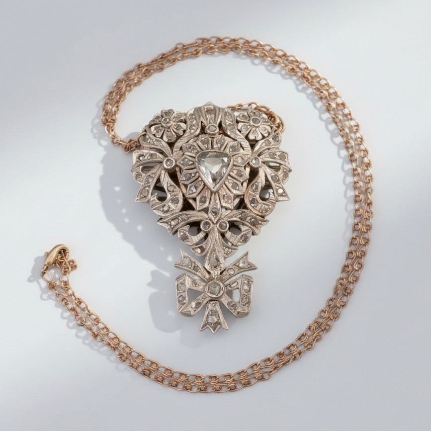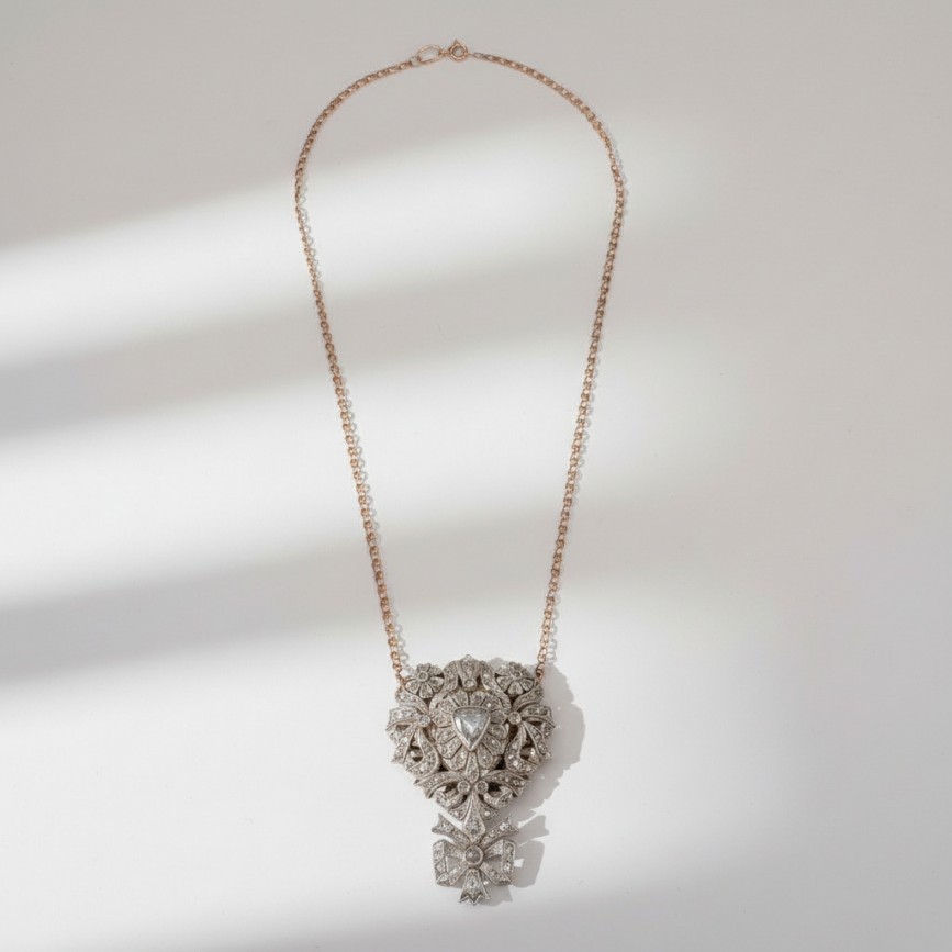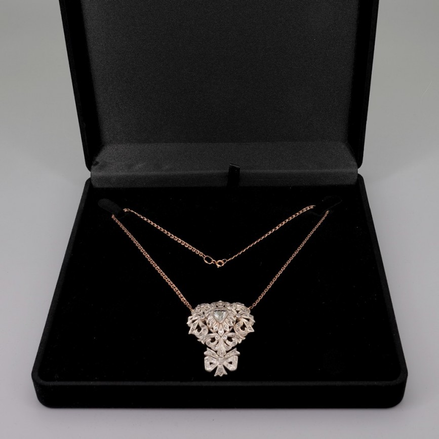 Colier de epocă georgiană din aur roșu 14k și argint decorat cu diamante naturale 1.26 CT