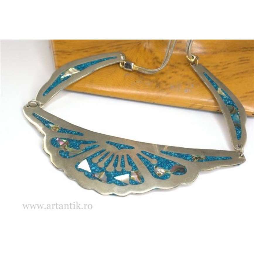 Vandut colier AZTECA. mexican intaglio . turcoaz & scoica abalone. Mexic