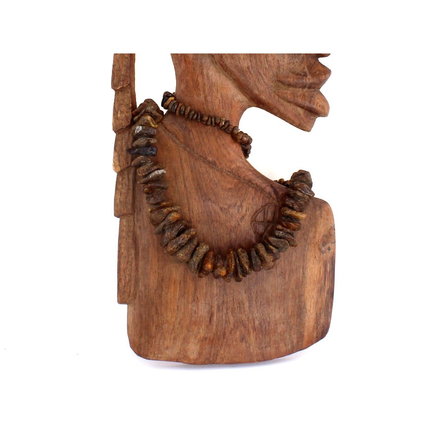 Colierul oferit spre vânzare este compus din geme de chihlimbar neprelucrate termic, acestea păstrându-și toate proprietățile terapeutice, fiind utile în activarea circulației sângelui, în calmarea febrei și infecțiilor, combaterea oboselii, stresului, depresiei și ajutând la ameliorarea iritațiilor pielii și afecțiunilor respiratorii.