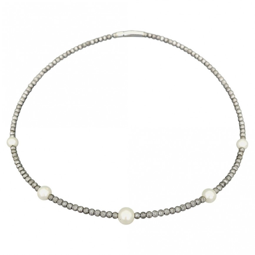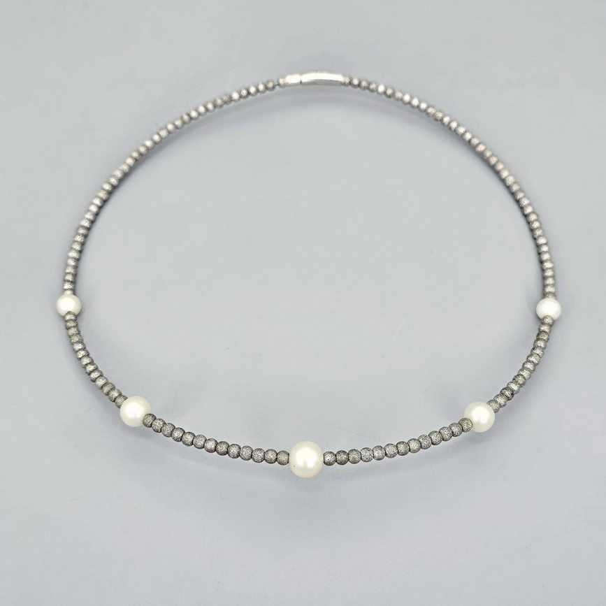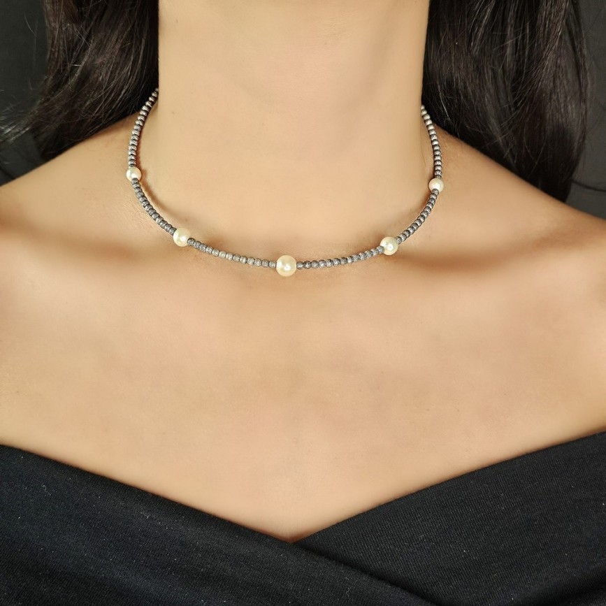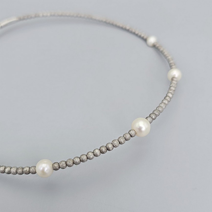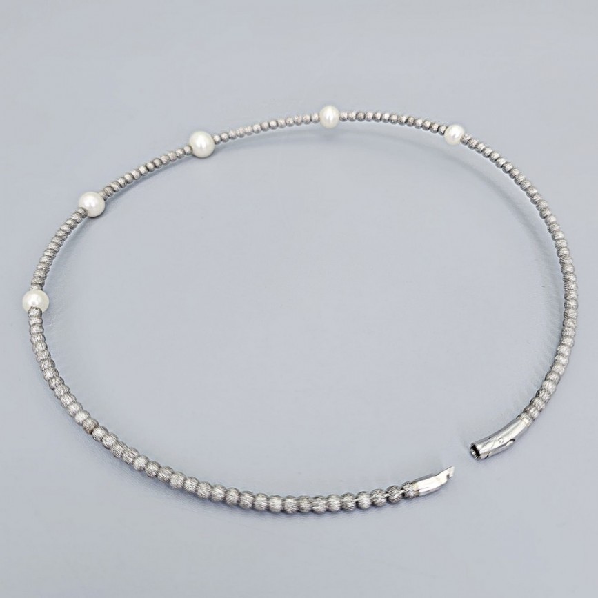Rafinat colier choker din argint texturat și perle naturale de cultură AAA +.