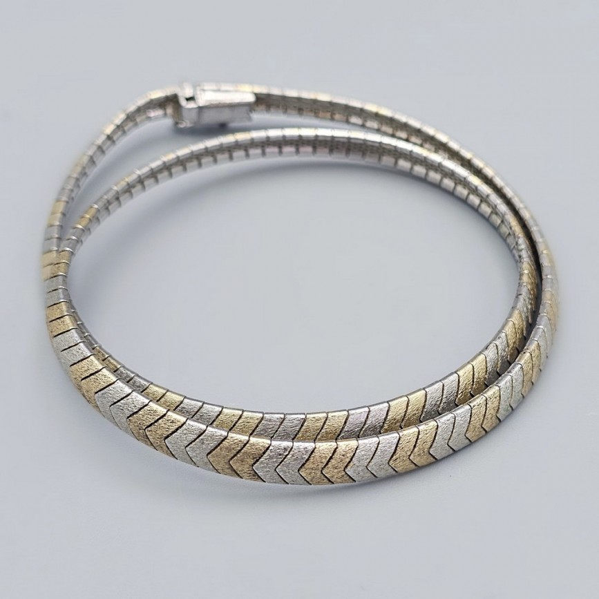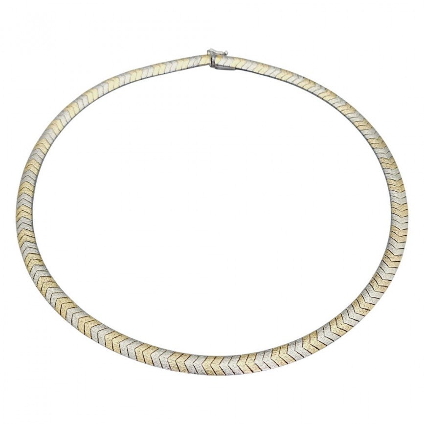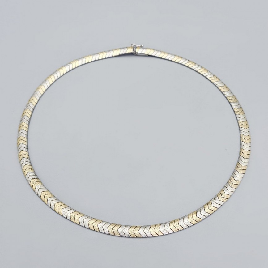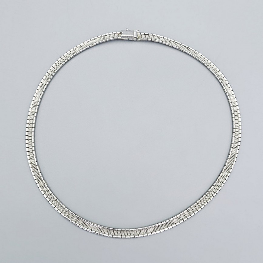 Colier realizat din argint rodinat, cu structură flexibilă compusă din segmente geometrice dispuse în motiv zig-zag,