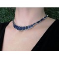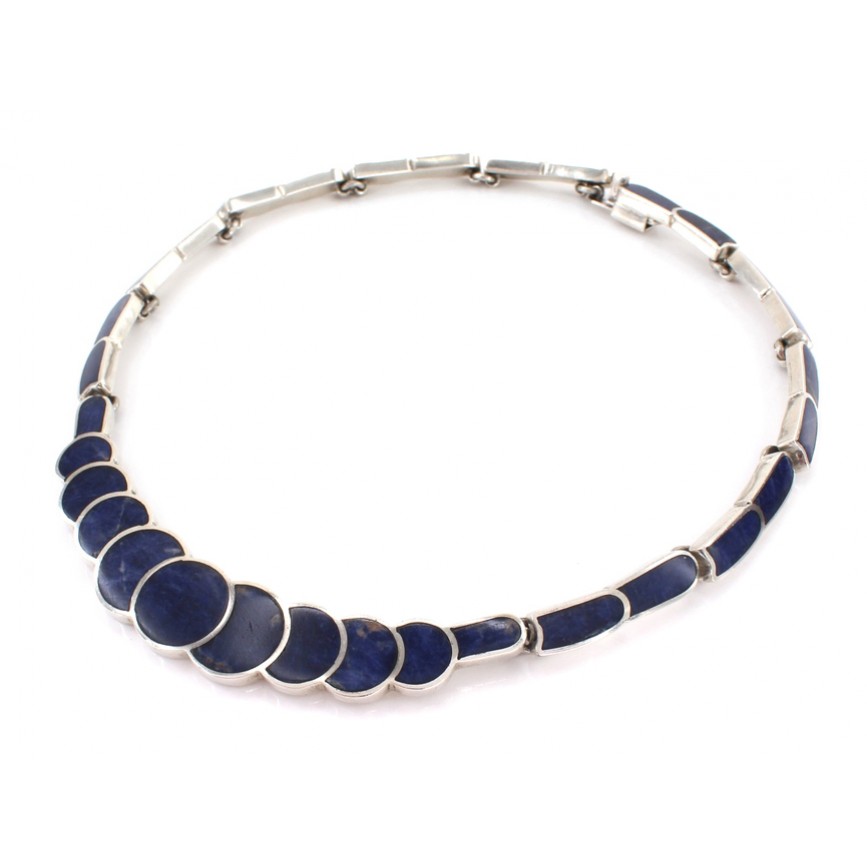 Spectaculos colier modernist mexican, tip choker, decorat cu intarsii de de sodalit natural.