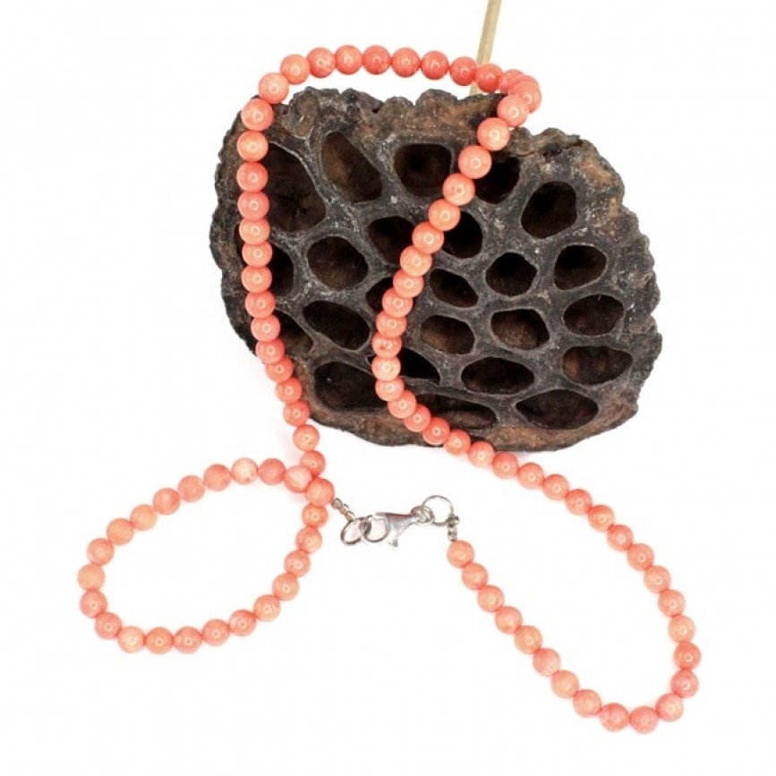 colier realizat din elemente de coral natural Momo; sistem de închidere din argint