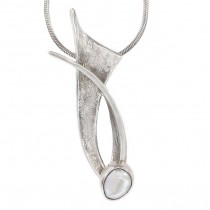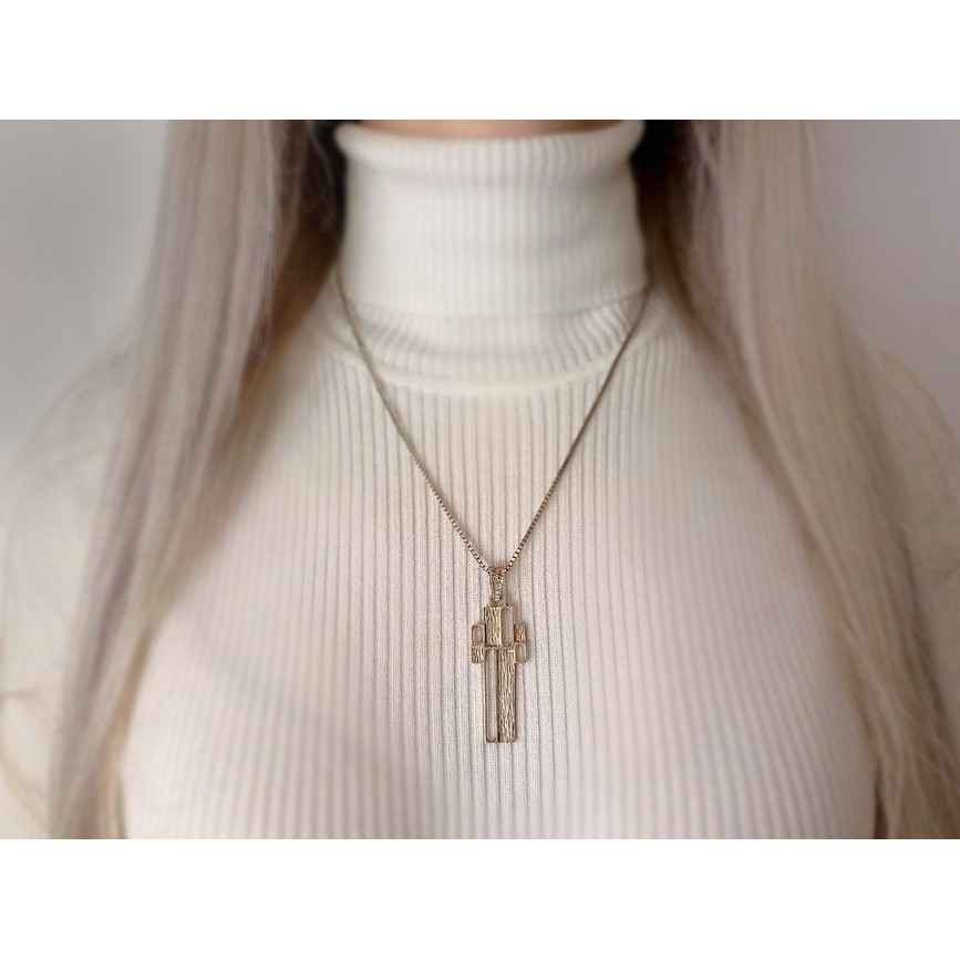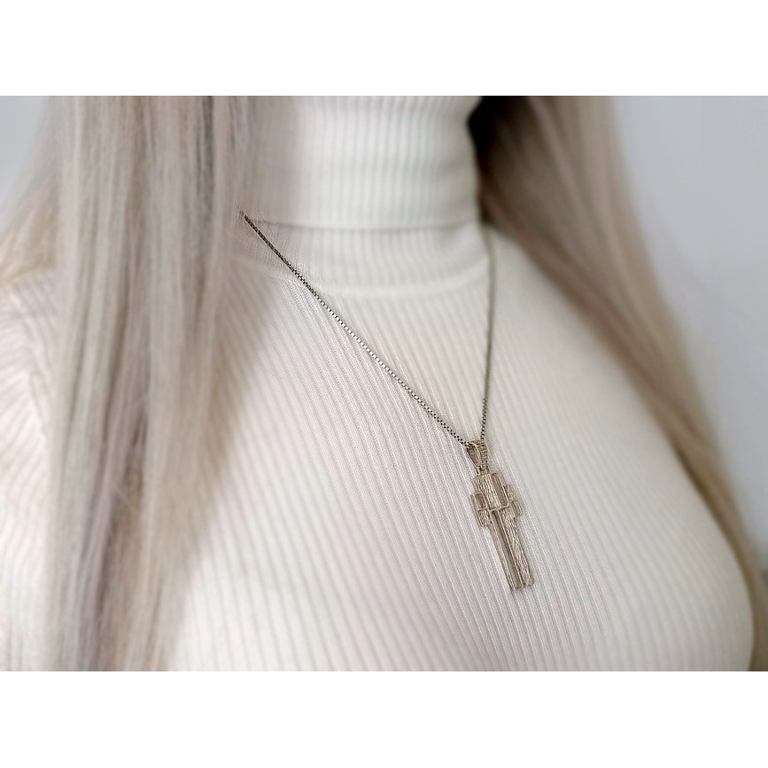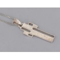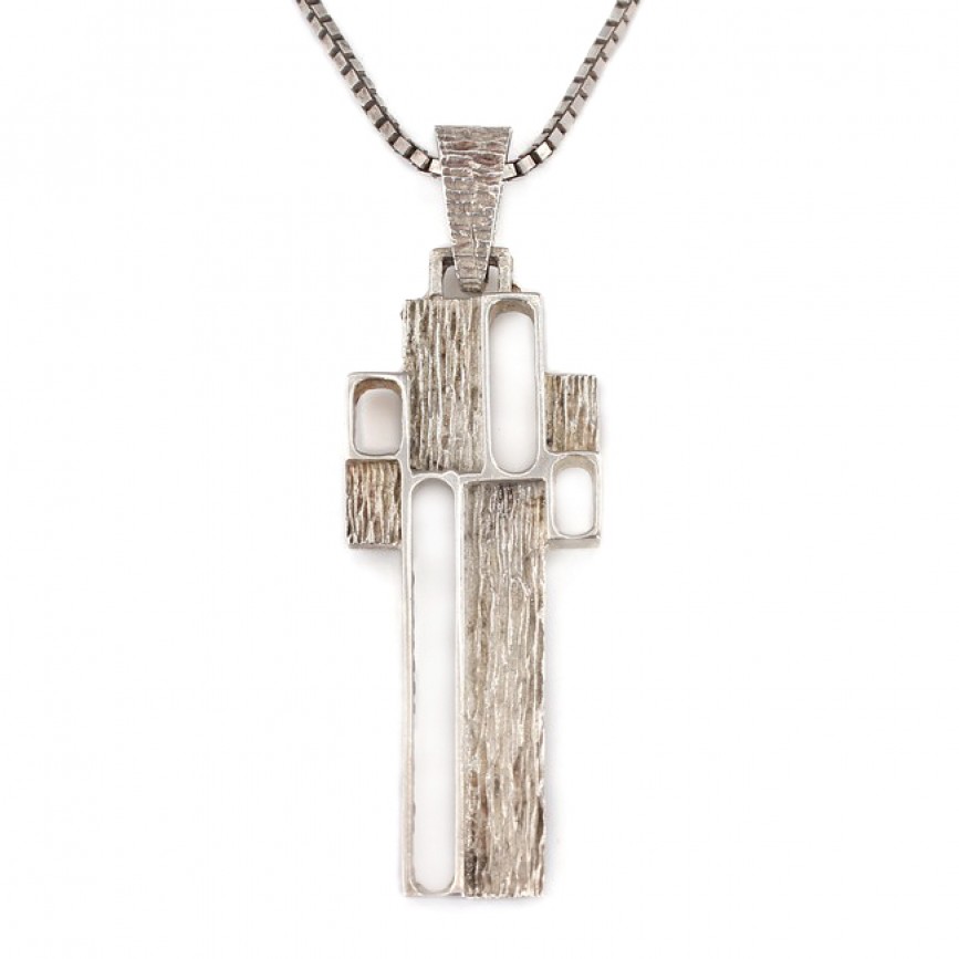 Colier unisex din argint, accesorizat cu un pandant religios inedit stilizat în manieră specifică modernismului de perioadă mid-century.