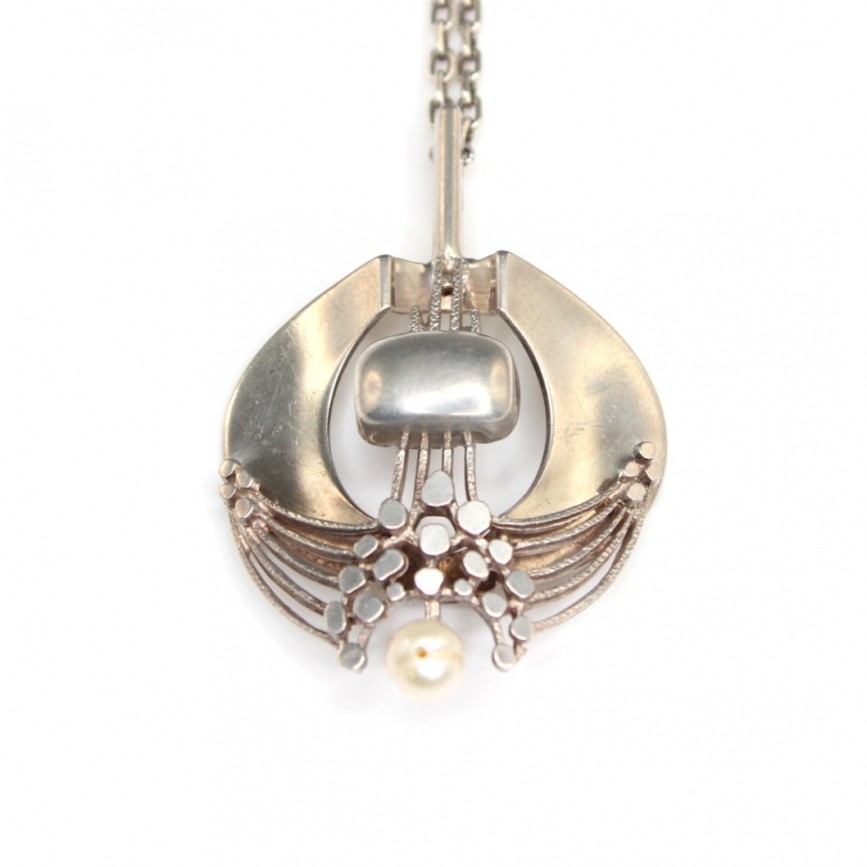 pandant statement, "pendulum " , decorat cu o perlă naturală de cultură, baroque