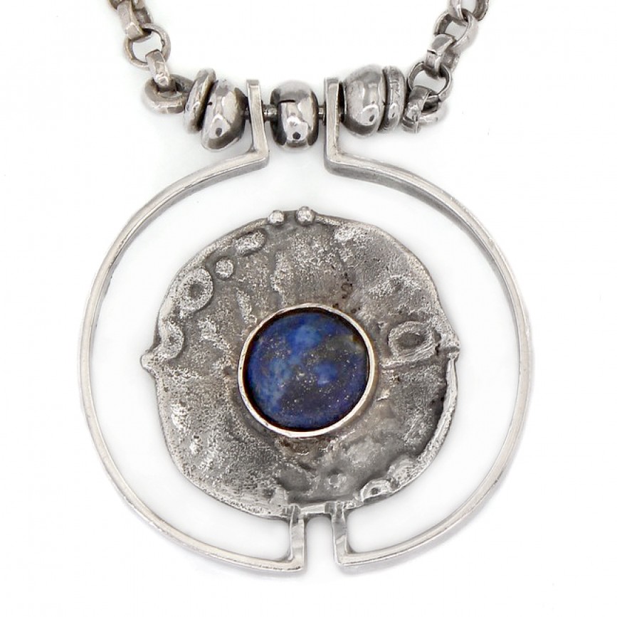 Colier din argint cu pandant statement decorat cu anturaj de lapis lazuli natural.