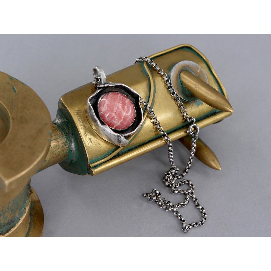 Colier accesorizat cu un pandant statement mid-century decorat cu un frumos specimen de rodocrozit natural.