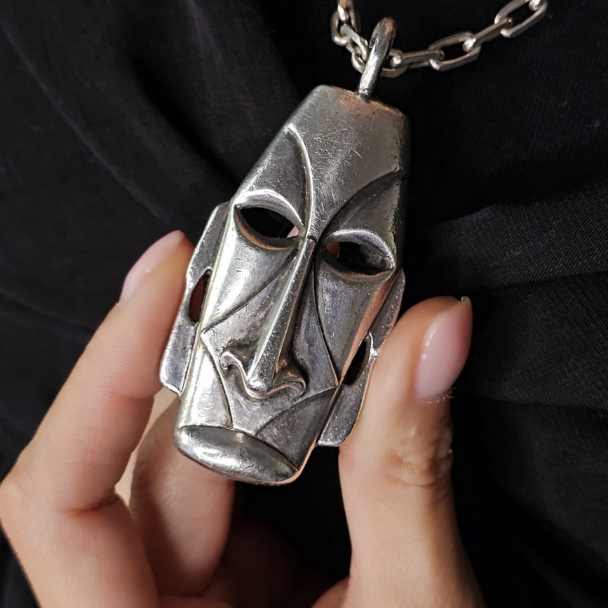 impresionant pandant Archaeology Revival evocând cultura Moai din Insula Paștelui.