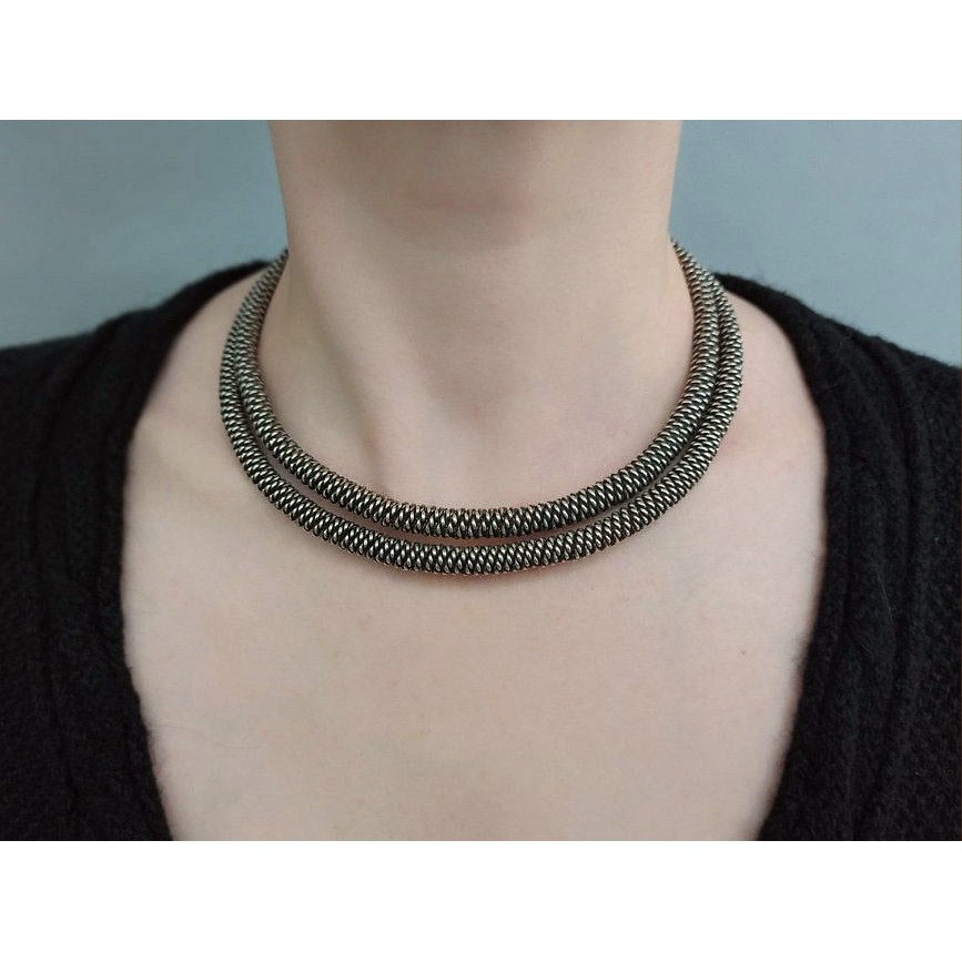 Colan realizat prin împletire densă a unor fire robuste din argint torsadat.
