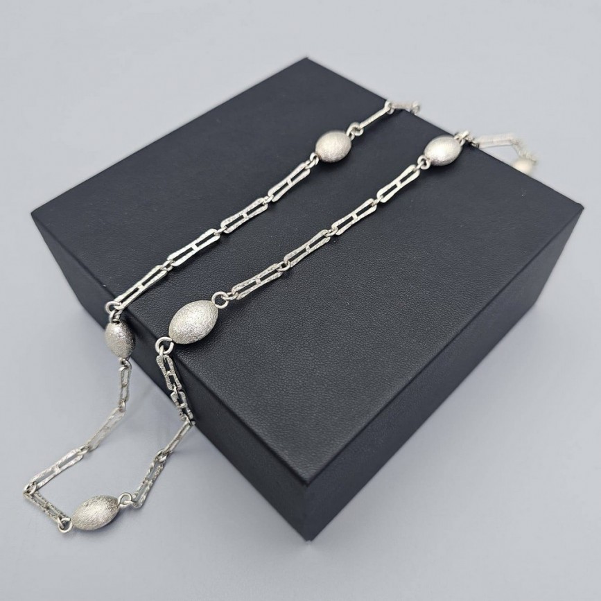 Elegant și rafinat prin simplitatea geometrică, acest colier modernist este realizat din argint rodinat,