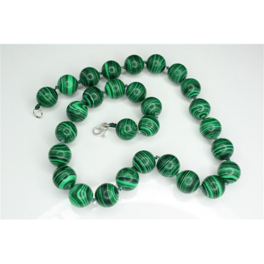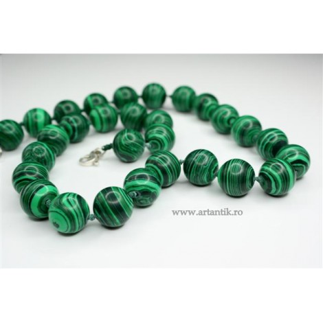 calitatea malachitului utilizat pentru realizarea acestui colier, ne indica ca provenienta zona de extractie miniera din Rusia.