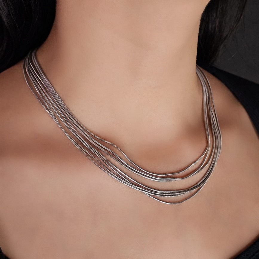 Elegant colier multistrand din argint rodinat