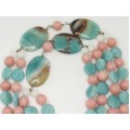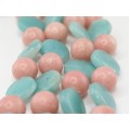 Opale " Carribean blue ", opale peruviene roz, opale peruviene albe, opale peruvine bleu, pastelate cu nuanțe de alb și spectaculoase incluziuni dendritice ( negru, ruginiu, maro-medium ).