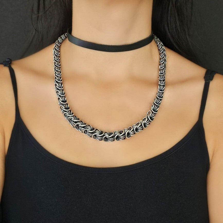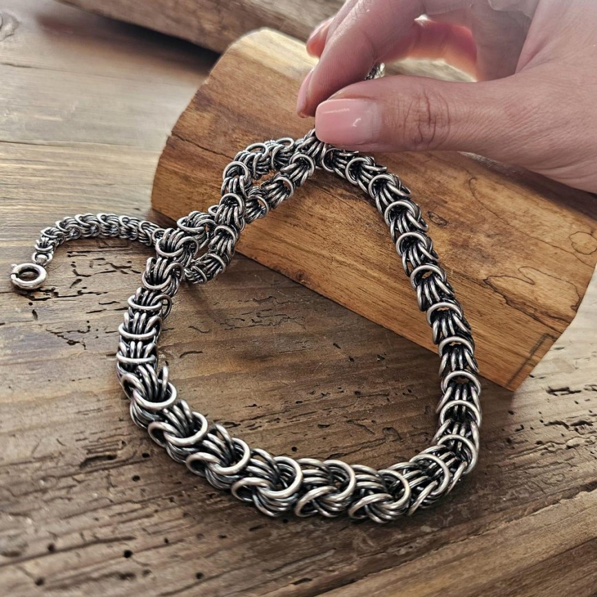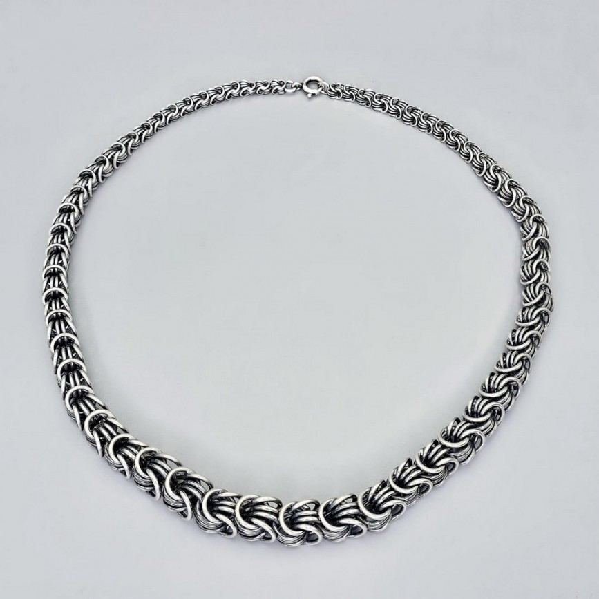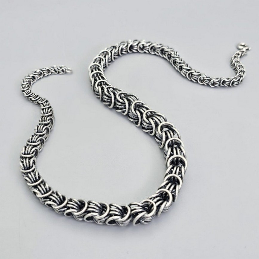 Colier statement unisex Byzantine Chainmaille manufacturat în argint.