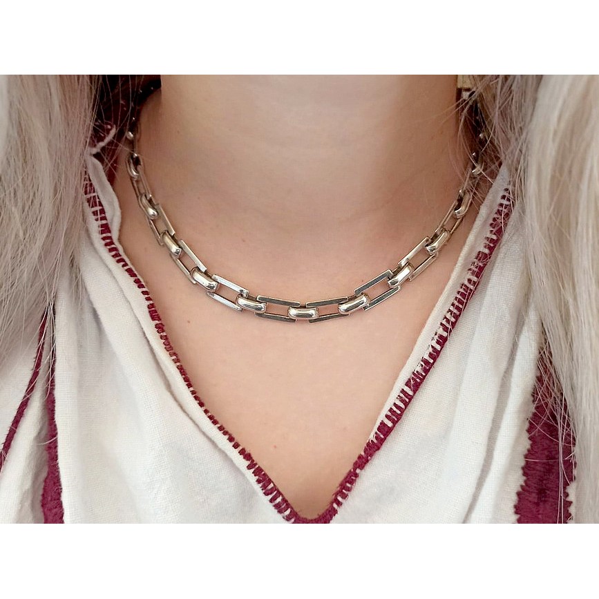 Colier modernist, unisex, din argint, elaborat în manieră specifică orfevrilor mexicani din a doua jumătate a secolului XX.