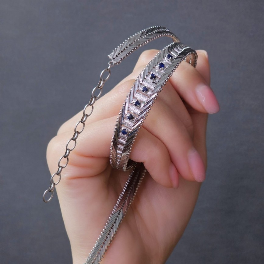 Argint placat cu rodium, etalând un lustru specific aurului alb.