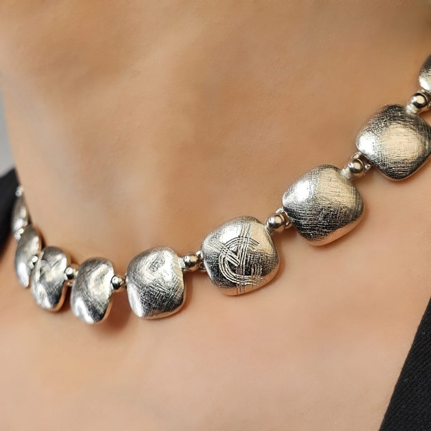 Colier statement Yves Saint Laurent, cu design retromodernist specific decadei 1980 - 1990.