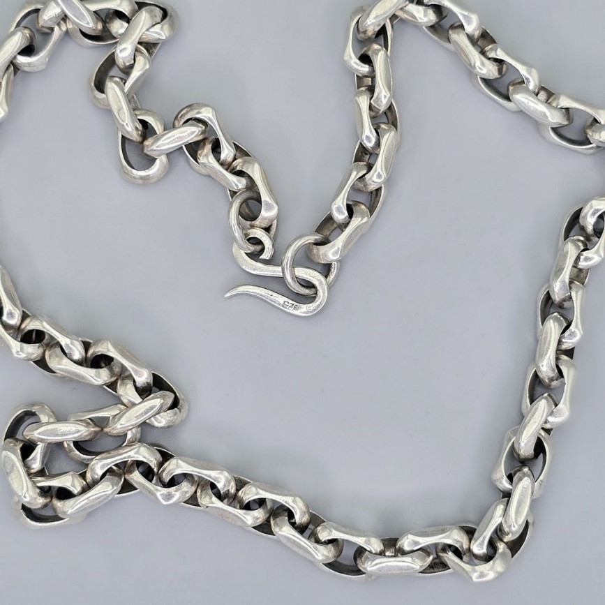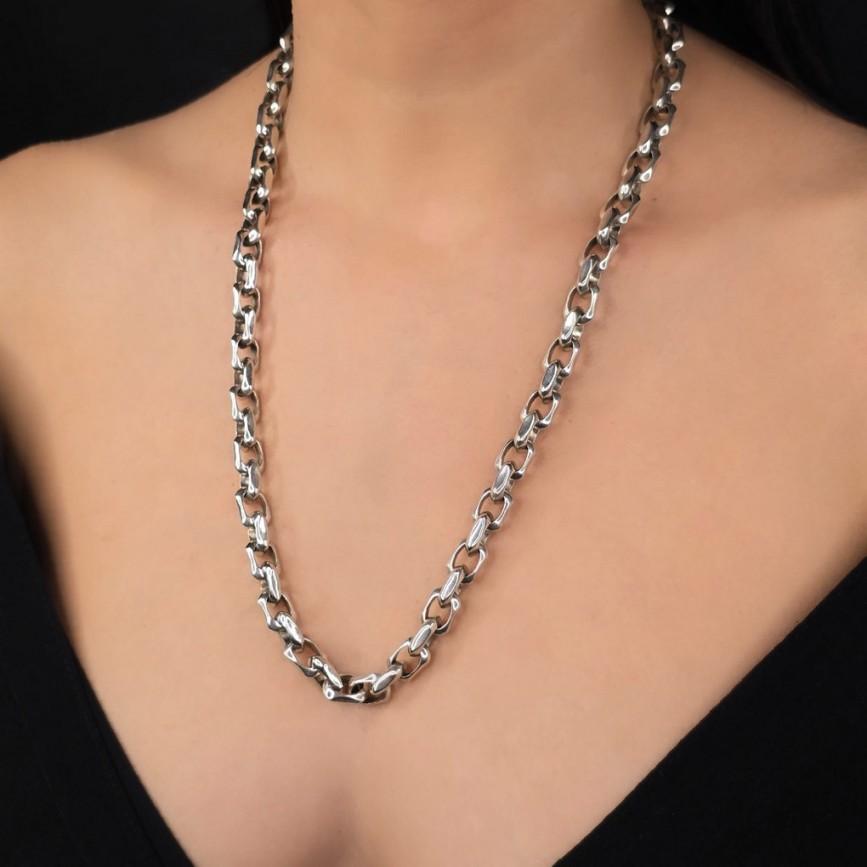 Colier statement, unisex, din argint masiv, cu zale romboidale, atent geometrizate.