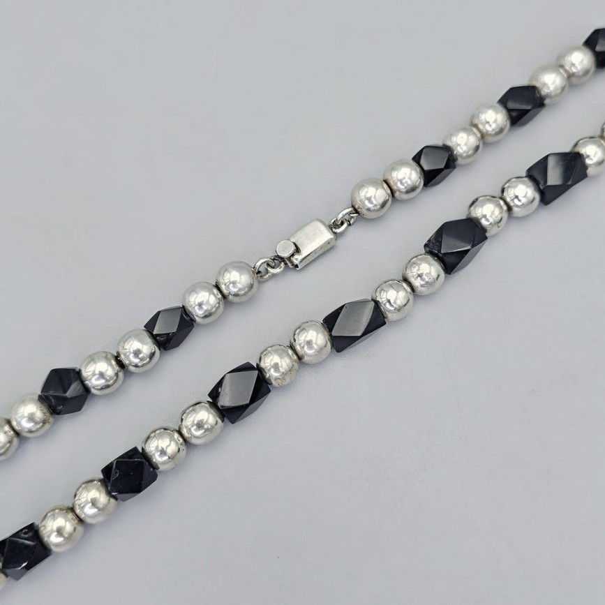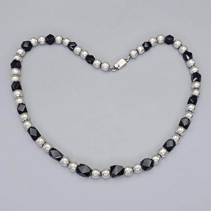 Piesă modernistă cu design geometric echilibrat, alcătuită din elemente sferice și segmente multifațetate de obsidian natural,