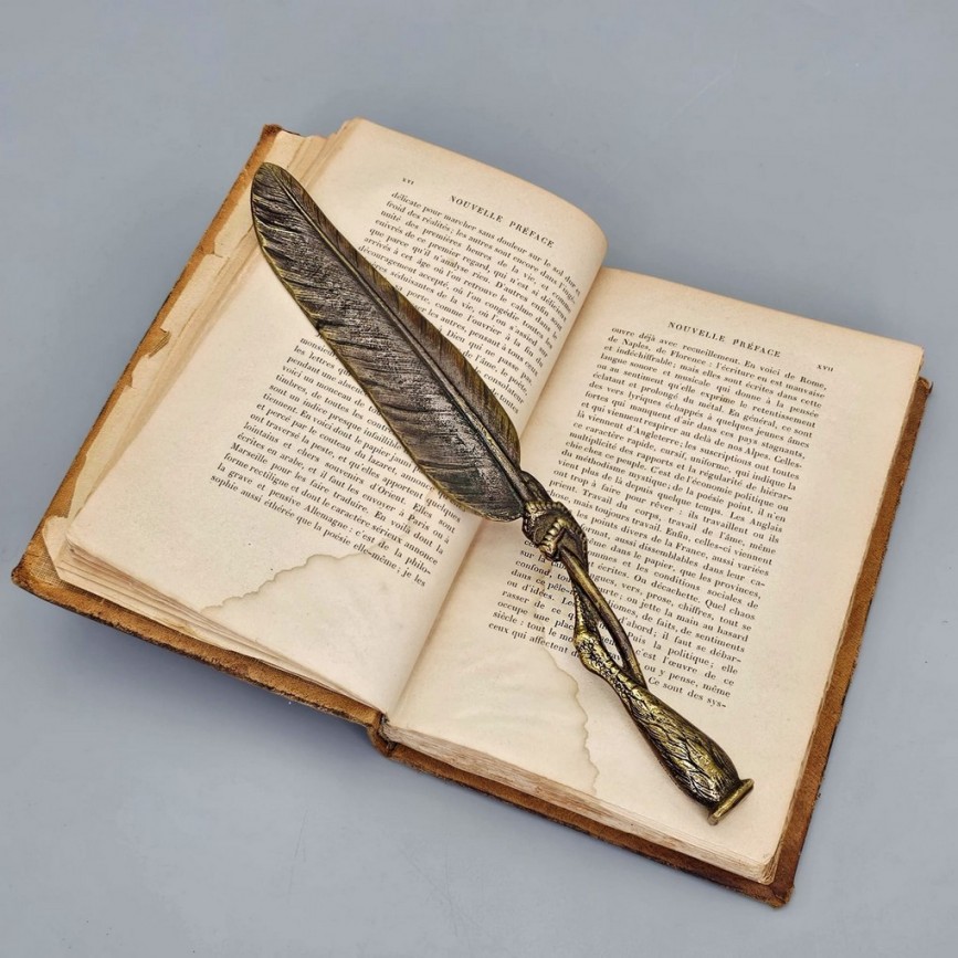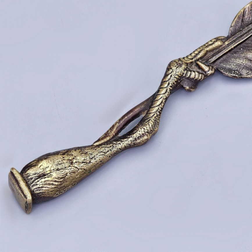 Prin compoziția sa sculpturală și simbolistica asociată scrisului, acest coupe-papier reprezintă un exemplu rafinat de orfvrărie utilitară