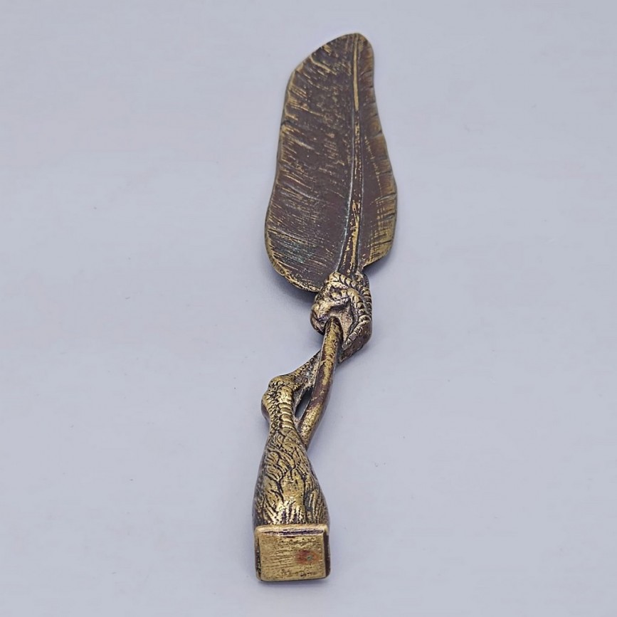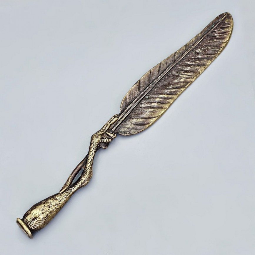Piesa este modelată sub forma unei pene stilizate, tratată cu un relief fin ce reproduce nervurile naturale ale penajului,
