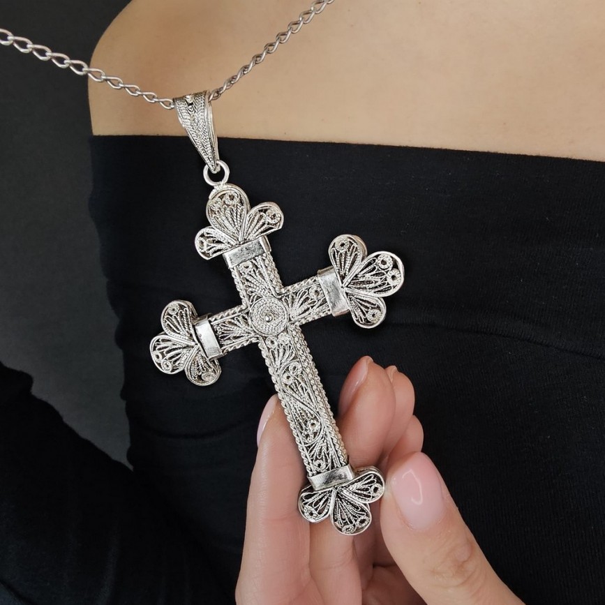 Cruce pectorală manufacturată din argint filigranat