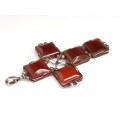 agate carnelian atasate cu prinderi flexibile de argint impletit, modelat si granulat