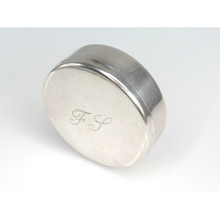 Capac ușor convexat, decorat prin gravare cu monograma ” F S ”.