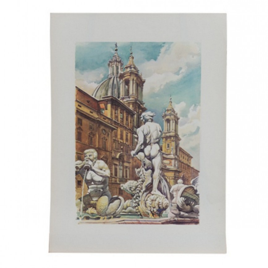 litografie de autor, Angelo Marinucci , dupa lucrarea " Fontana di Moro "