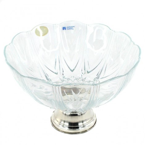 Elegantă fructieră - centru de masă cu bol din cristal și picior din argint.
