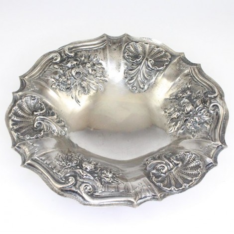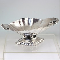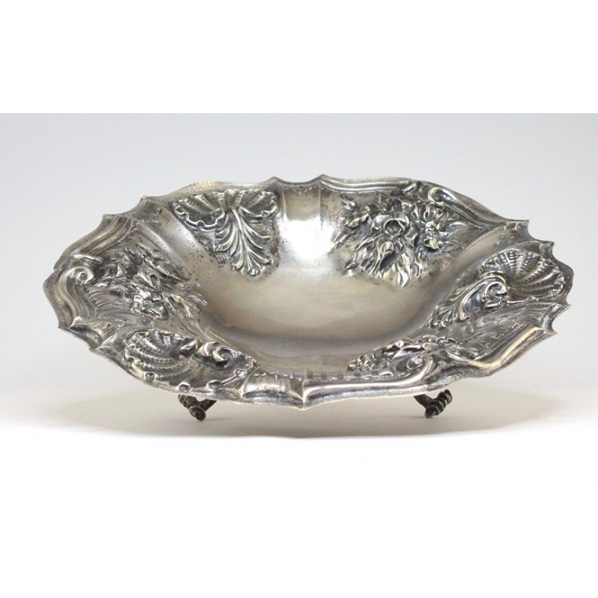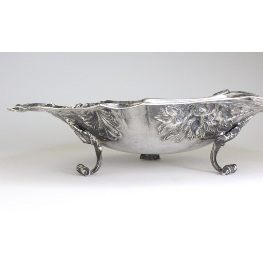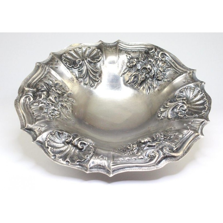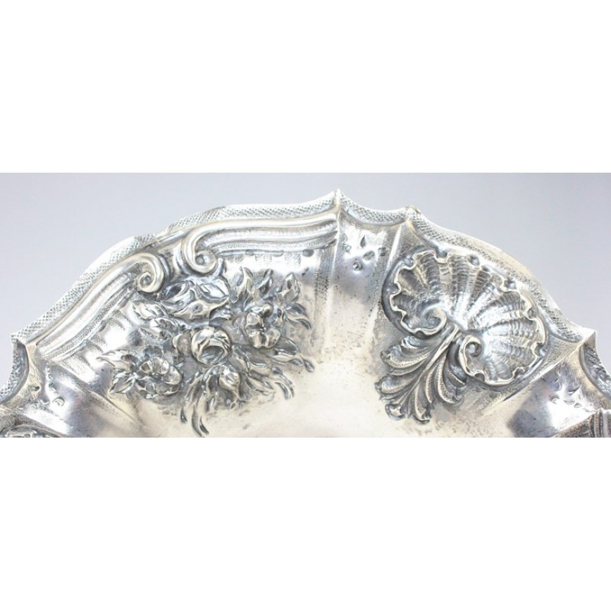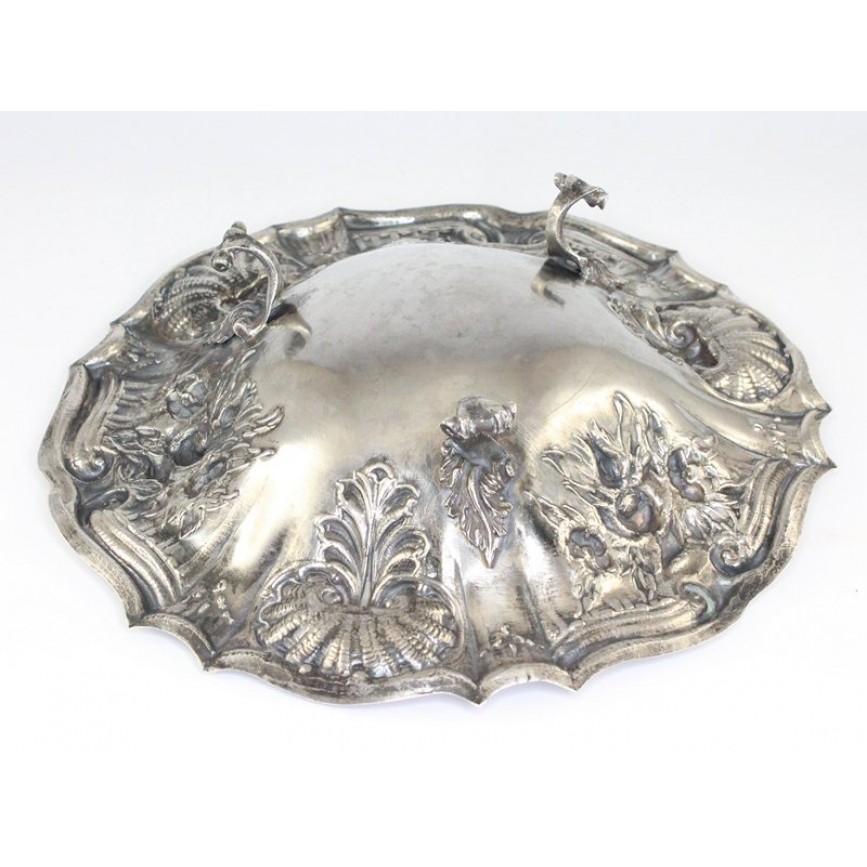 expresivele decoratiuni coquilles, redate in cavorelief de ambutisaj, sunt elegant ingemanate cu frunze de acant ce se prelungesc prin repoussage amplu, spre interiorul vasului