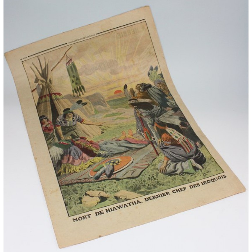 Pagină de închidere, cu o cromolitografie de presă anunțând decesul căpeteniei triburilor amerindiene Iroquois.
