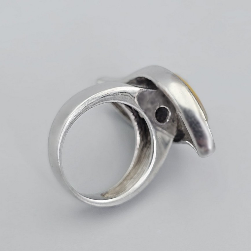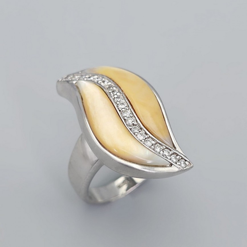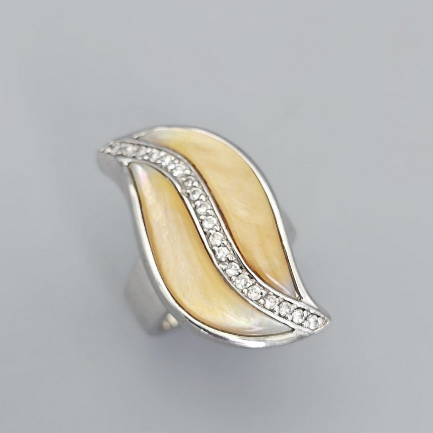 Elegant inel statement din argint masiv, decorat cu inserții de sidef natural și incrustații de microcristale cz.