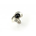 coronament decorat cu anturaj de onix negru natural, cabochon, sertizat in caseta ovoidala