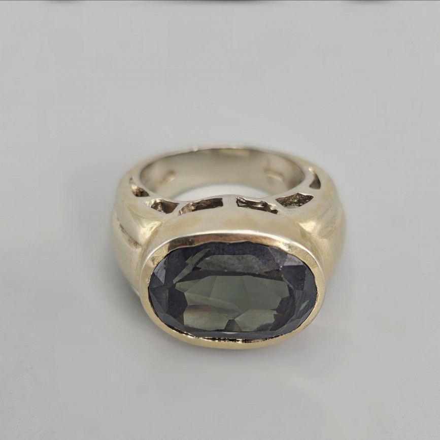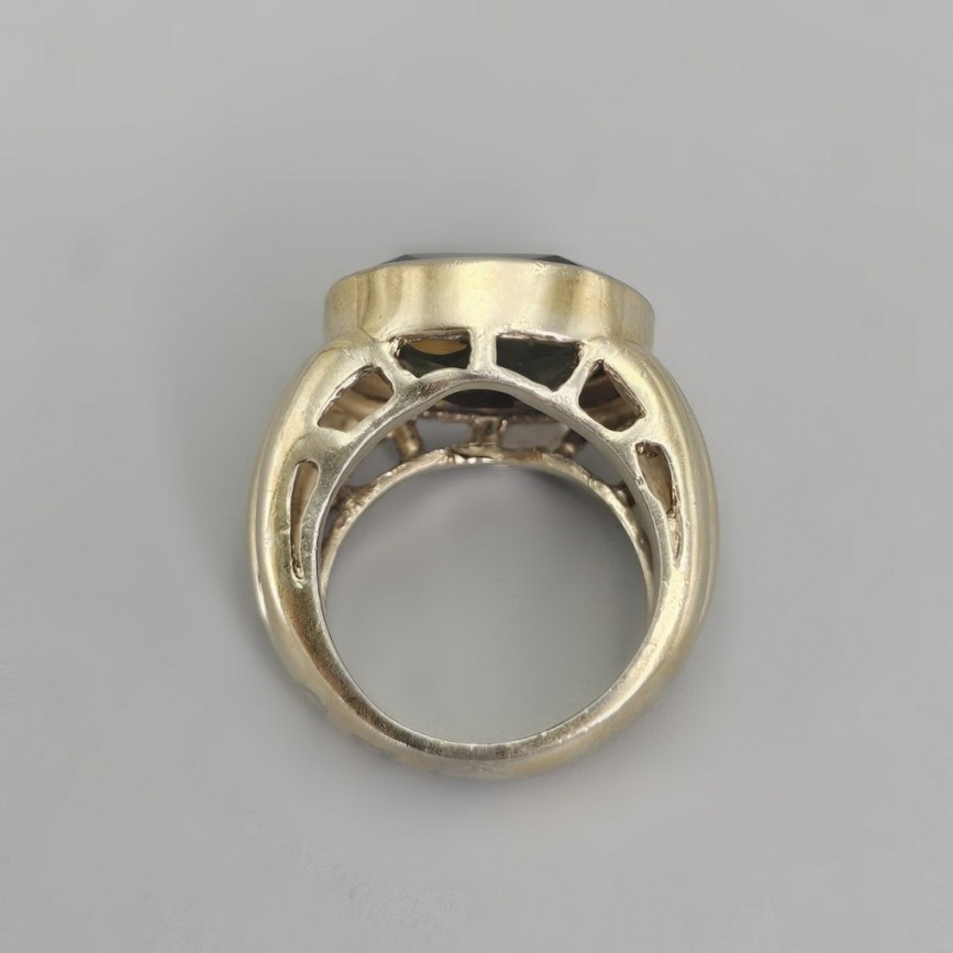 Inel cocktail retromodernist din argint aurit și spinel Verneuil.